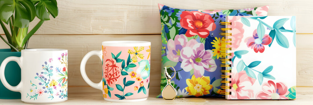 Zazzle's Unique Personalized Gift Ideas: Floral Mug, Stylish Notebook, Geometric Cushion, and Custom Keychain