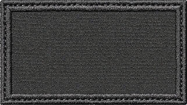 Stunning photo of blank black fabric patch with embroidered border, isolated on white background.