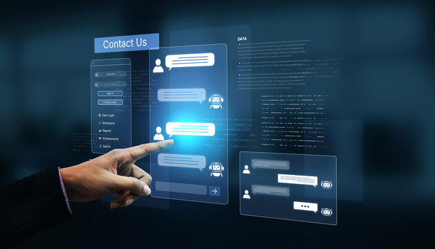Chatbot interface representing artificial intelligence customer support and automated response system for business communication. Parse