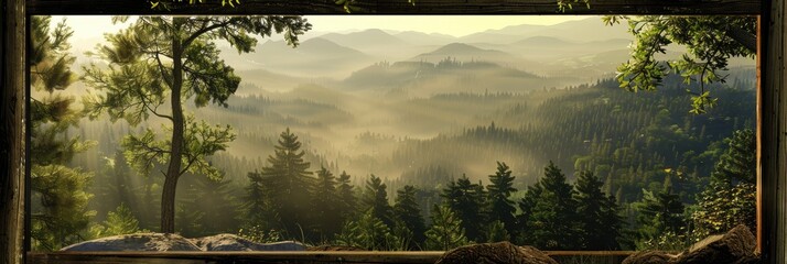 Misty mountain sunset with dramatic skies and rock formations
