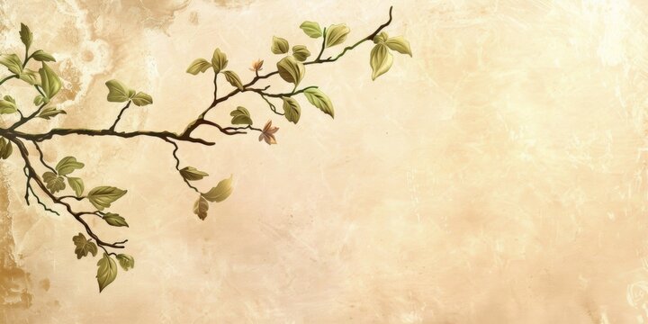 Wooden heart hanging by rope surrounded by green leaves on textured background with empty space for customizable text or message.