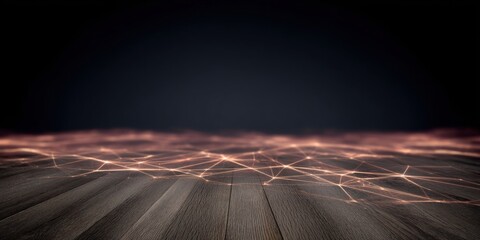 Electric blue neon grid converging to horizon with luminous nodes and futuristic depth