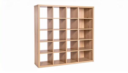 Bright natural wood cube storage unit, offering versatile modular shelving for decluttering and organizing any modern living space or office environment