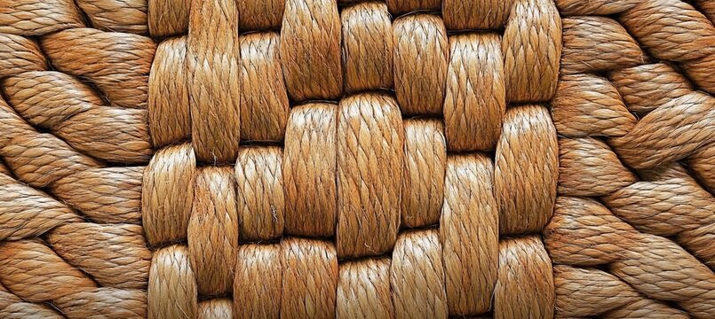 Symmetrical woven straw mat texture featuring a central empty space for design versatility
