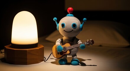 Glowing christmas snow globe with santa and child figurines, teal light accents tabletop decor