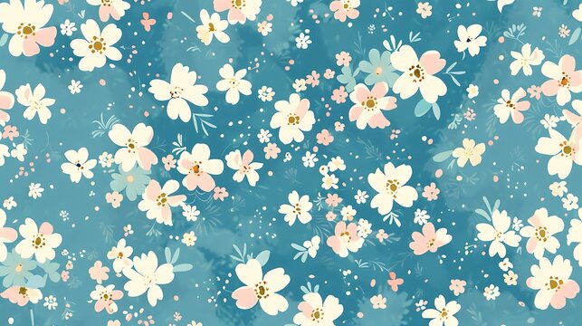 Vibrant and cheerful floral pattern with small flowers and green leaves
