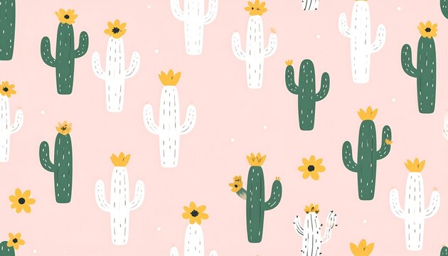 Delicate floral cactus seamless pattern, adding a serene touch with pastel backgrounds