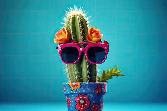 Playful cacti pattern on bold blue background