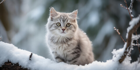 portrait of a cute gray cat sitting among Golden ears of wheat on a farm field on a summer Sunny day