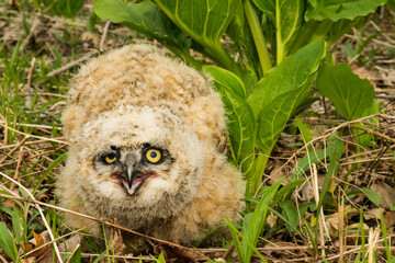 Great Horned Owlet fallen from nest (Bubo virginianus)