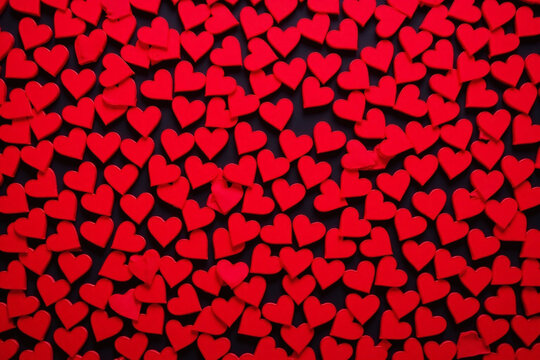 Small red heart shaped cutouts cover frame with dark background