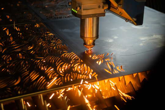 CNC Laser Metallurgy milling plasma cutting of metal engraving. Concept background modern industrial technology.