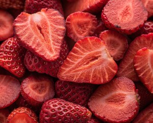 Freeze dried strawberries as background.