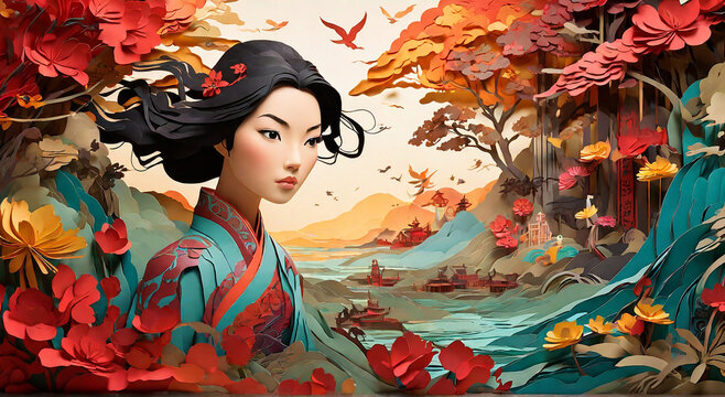 Great story of Mulan's heroic journey told in paper cutting art style