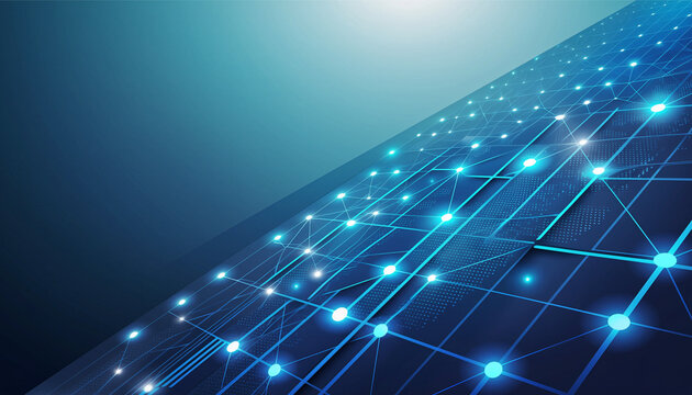 Futuristic Blue Digital Circuit Network with Glowing Cyan Lines and High-Tech Interface Elements on a Modern Technology Background