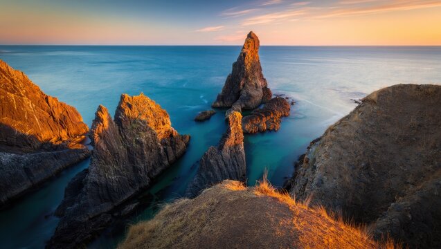 Serene and minimalist abstract background featuring a deep blue gradient with a jagged, layered line resembling a tear or a digital wave