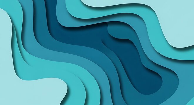 Abstract background with blue paper cut sea waves and topographic relief map effect creating depth and texture
