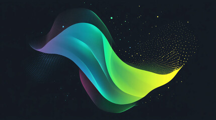 Dynamic flowing waves with green-blue gradient related to technology and futurism