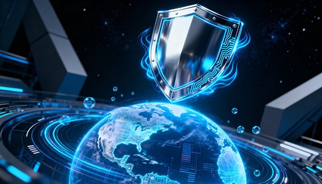 Futuristic digital world map with tech interface