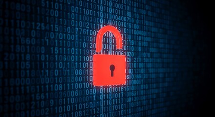 Digital Security Padlock on Binary Code Background Cyber Protection