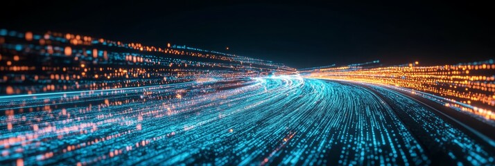 Network connectivity and Innovation: Digital data streams connect, highlighting global interconnectedness in a technologically advanced setting, symbolizing modern innovation and global networking.