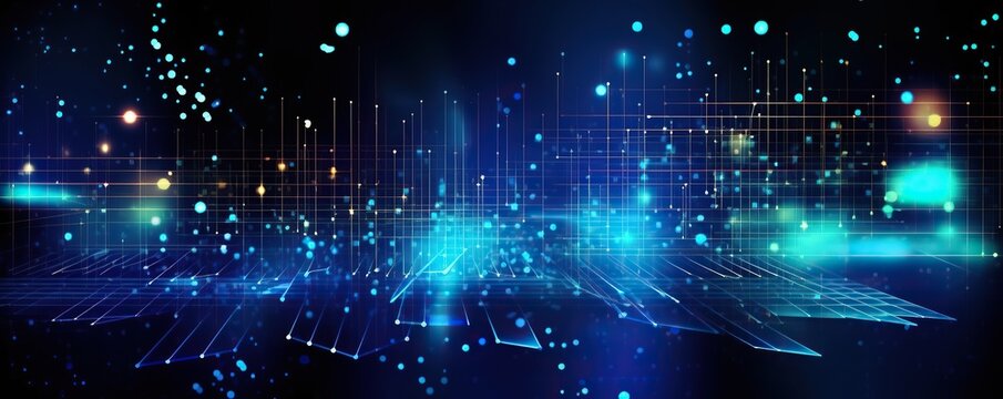 Abstract tech digital blue background with network lines and dots connecting in dynamic pattern. Modern cyber technology, data networks, ai, futuristic design
