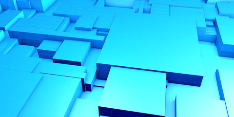 Abstract background with red and blue rays of light shining through cubical elements, creating an atmosphere of digital technology or futuristic space exploration.