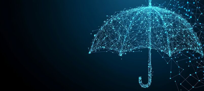 Abstract Umbrella Protection Concept, Futuristic Technology Shield, Innovation in Risk Management