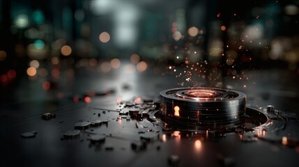 A digital representation of a padlock is displayed against a vibrant background composed of blurred lights and binary patterns. This image emphasizes themes of security and data protection in a modern