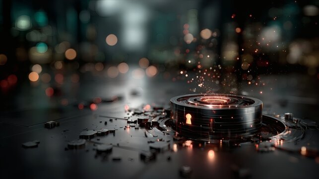 Digital glowing blue lock icon closeup, defocused circuit patterns, cybersecurity concept, data protection technology, encryption visualization, privacy security system, digital sa