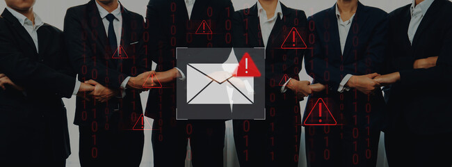 Phishing email alert concept showing digital envelope with warning sign represents data theft, network breach, and email security threats. Parse