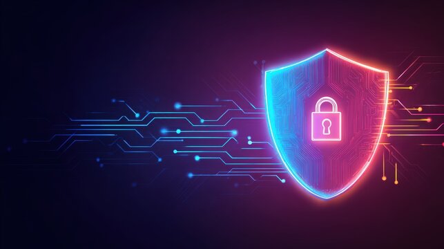 The Shield Against Neon Gradient Background Representing Futuristic Cybersecurity and Digital Protection