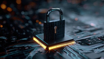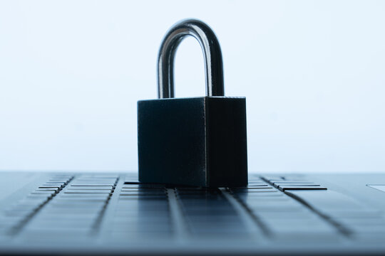 Padlock on a laptop keyboard. Digital security, data protection, and online safety concept.