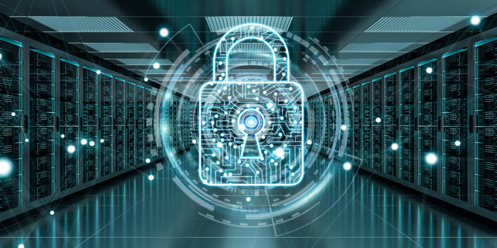 Cyber Security Padlock In Data Server Room Concept Images