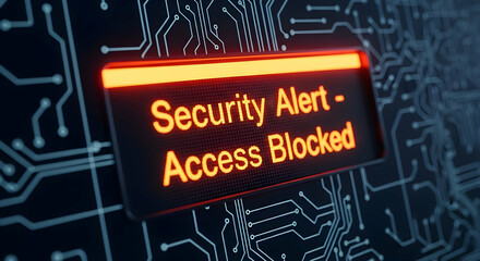 Security Alert Access Blocked Glowing Neon Warning Message Over Circuit Board