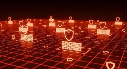 Glowing red globe among blue digital servers symbolizing cyber connectivity
