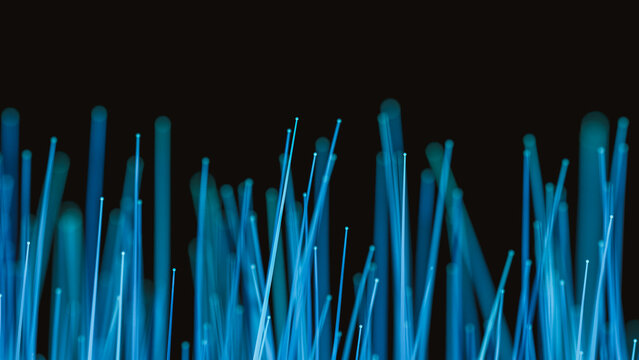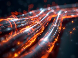 Glowing network cables interconnected on a dark background illustrating the flow of data in a digital environment