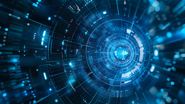 Futuristic circular digital interface with data display