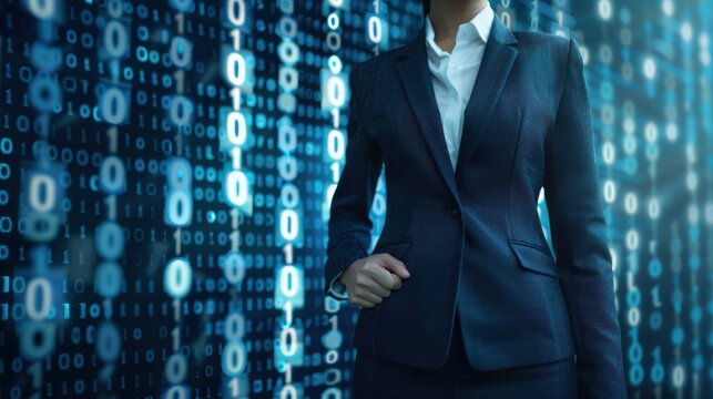 Cybernetics concept with binary code over human figure