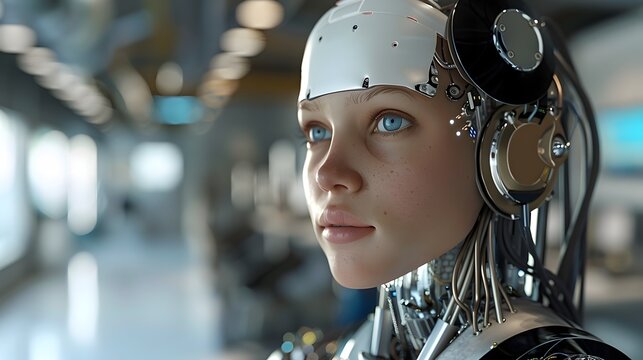 Afrofuturistic cyborg woman illustration with cybernetic enhancements
