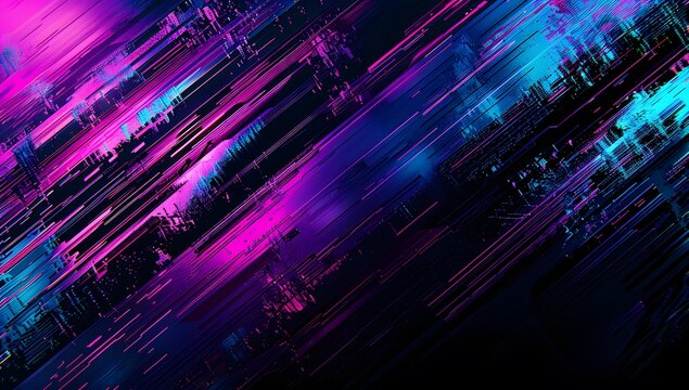 glitch texture background with neon colors and grainy noise effects. Abstract digital template design for banners, posters or covers