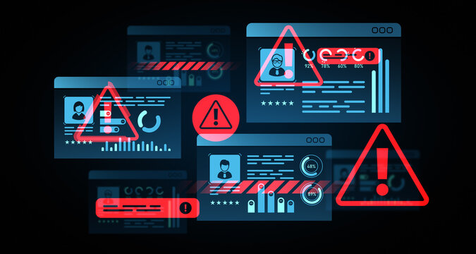 Digital interface showing cybersecurity alerts and warnings