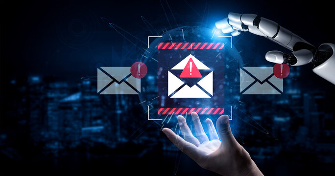 Advanced Email Security System Illustration with AR Inbox Display and Scam Detection Alert
