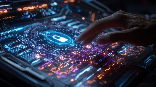 Cybersecurity concept with padlock icon on digital screen.