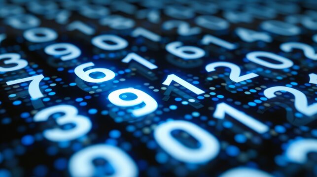 Abstract Background with Glowing Blue Binary Digits. Numbers on Black Background, Technology Concept