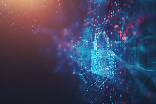 Cybersecurity concept with digital padlock overlay