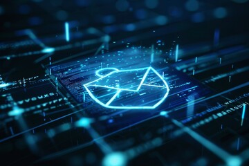 An animated shield icon overlaying an email client interface, indicating secure communication