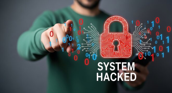 Digital security breach red padlock binary code cybersecurity