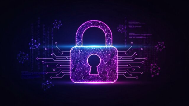 Futuristic digital security interface with padlock graphic