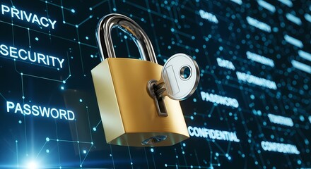 Cybersecurity concept with keyhole and digital padlock for data protection and network security